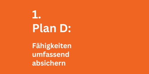 Plan D ist der Plan für Dein Kind: Bei Plan D vereinbarst Du eine monatliche Rente. Diese zahlt, wenn Dein Kind eine der versicherten Fähigkeiten verliert. So ist es immer versorgt und hat einen Plan, wie es weitergeht.