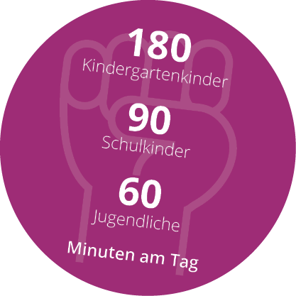 Als Faustregel gilt für Säuglinge und Kleinkinder: Sie sollten sich so viel wie möglich bewegen. Kindergartenkinder sollen sich mindestens 180 Minuten pro Tag bewegen, während für Schulkinder und Jugendliche eine Empfehlung von mindestens 60 bis 90 Minuten pro Tag gilt.Doch was gilt als aktive Bewegung? Einfaches Gehen reicht für junge Menschen nicht aus. Ab einem Alter von vier bis fünf Jahren sollte mindestens eine Stunde in Form von sportlicher Aktivität, also in moderater bis intensiver Intensität erfolgen. Das bedeutet, die Anstrengung sollte deutlich spürbar sein, Kinder sollten dabei ins Schwitzen und außer Atem geraten.