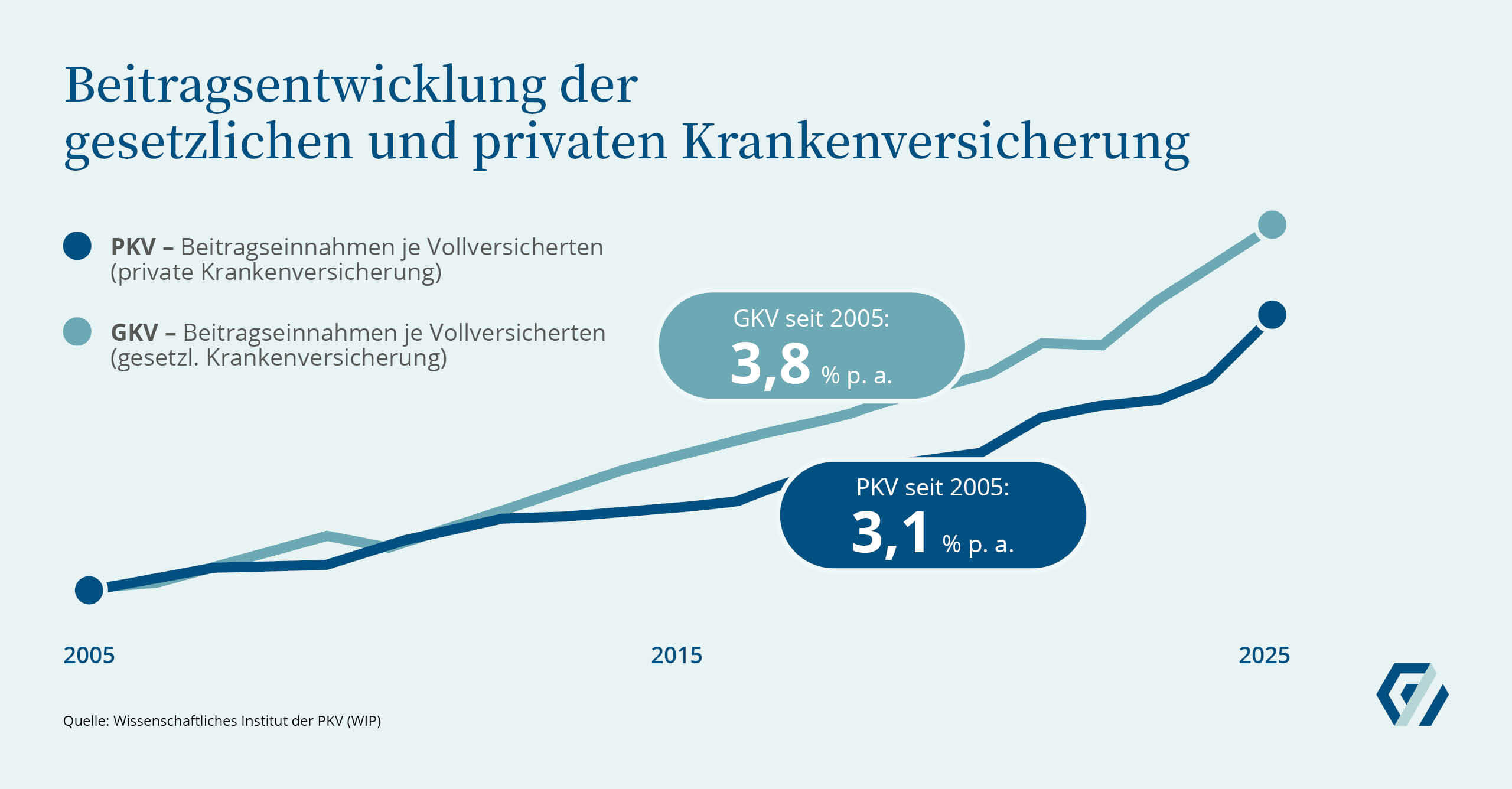 Während in der GKV die Beiträge regelmäßig steigen und Leistungskürzungen drohen, zeigt sich die PKV deutlich stabiler. Die Beitragssteigerungen fallen hier im Durchschnitt geringer aus – und das bei einem deutlich besseren Leistungsniveau. Du kannst aus einer Vielzahl von Tarifen wählen und so sicherstellen, dass dein Versicherungsschutz optimal zu deinem Leben passt. Das Preis-Leistungs-Verhältnis überzeugt: Fast die Hälfte der PKV-Versicherten bewertet es positiv. In der GKV sind es deutlich weniger.